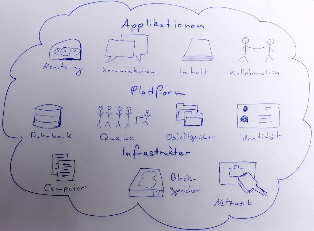 Aus Sicht der Cloud-Plattform-Betreiber, ist das ganze allerdings ein bisschen komplexer und besteht aus letztendlich drei Ebenen (Achtung nicht vollständig):